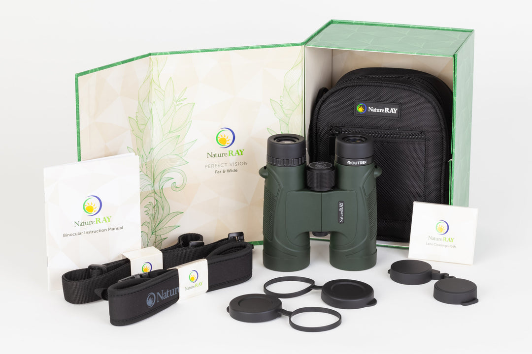 All NatureRay binoculars come complete with a gift box, instruction manual, lens cloth, carry case, neoprene neck strap, rubber lens covers.